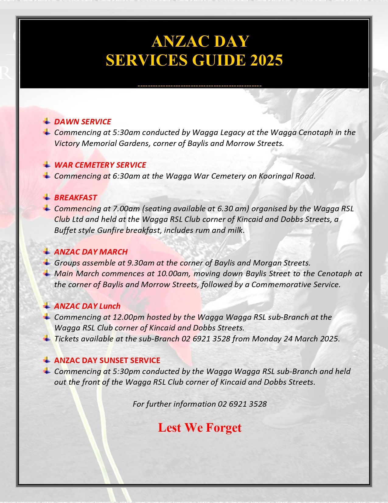 On ANZAC Day this year, the Wagga Wagga RSL sub-Branch welcomed Veterans, serving members, their families, special guests and the local community of Wagga to the services.