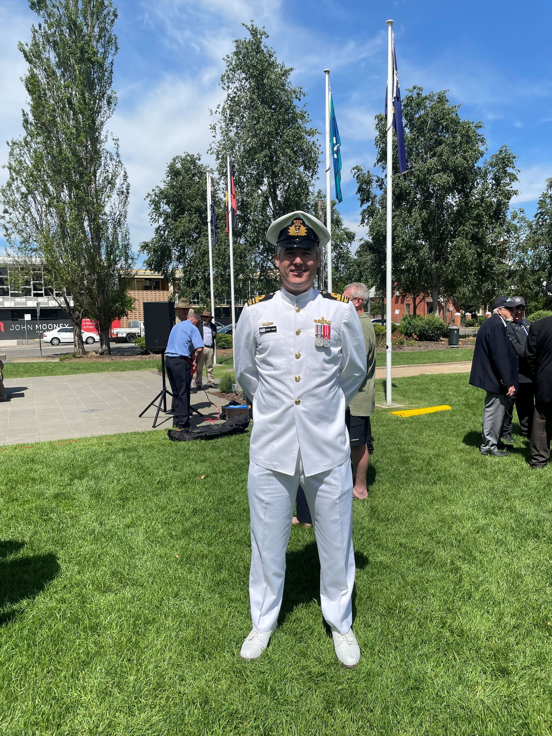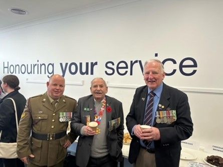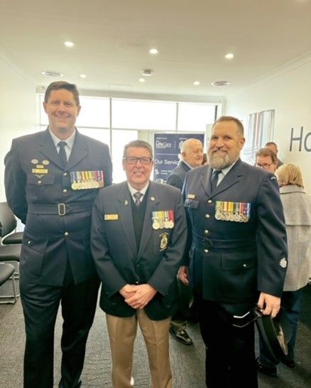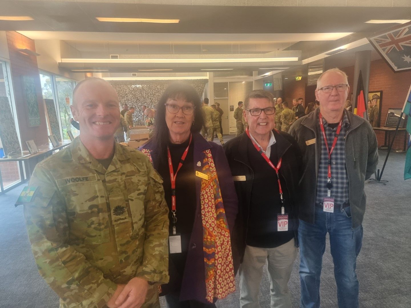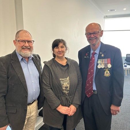 Please find below, a picture from the commemorative service, and a picture of Veterans who attended including Bob from the RAAF, Wayne from the Navy and Janelle from the Army.